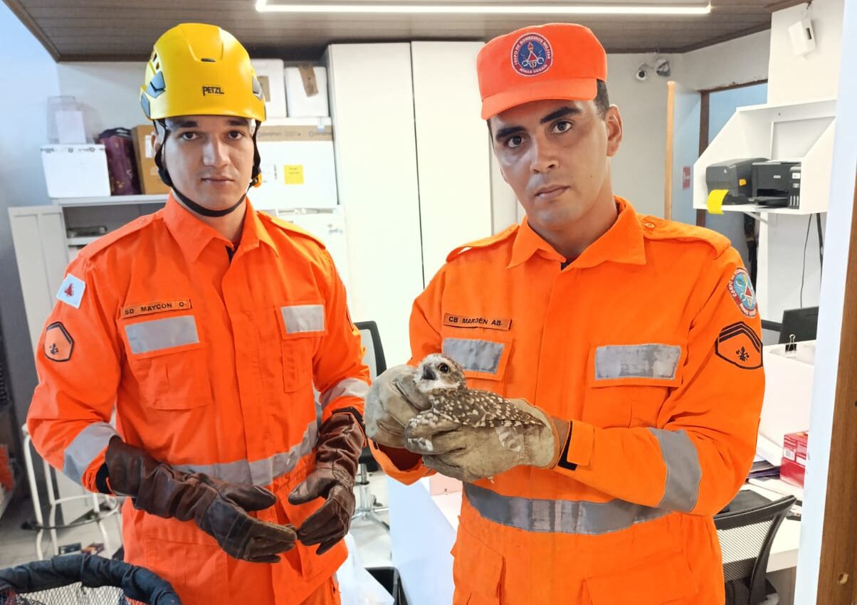 A ocorrência foi registrada após acionamento da corporação para atendimento em uma farmácia da cidade, onde uma coruja da espécie Athene cunicularia havia ficado presa no depósito do estabelecimento. De acordo com os bombeiros, o animal estava acuado e impossibilitado de sair por meios próprios, o que exigiu intervenção especializada.
