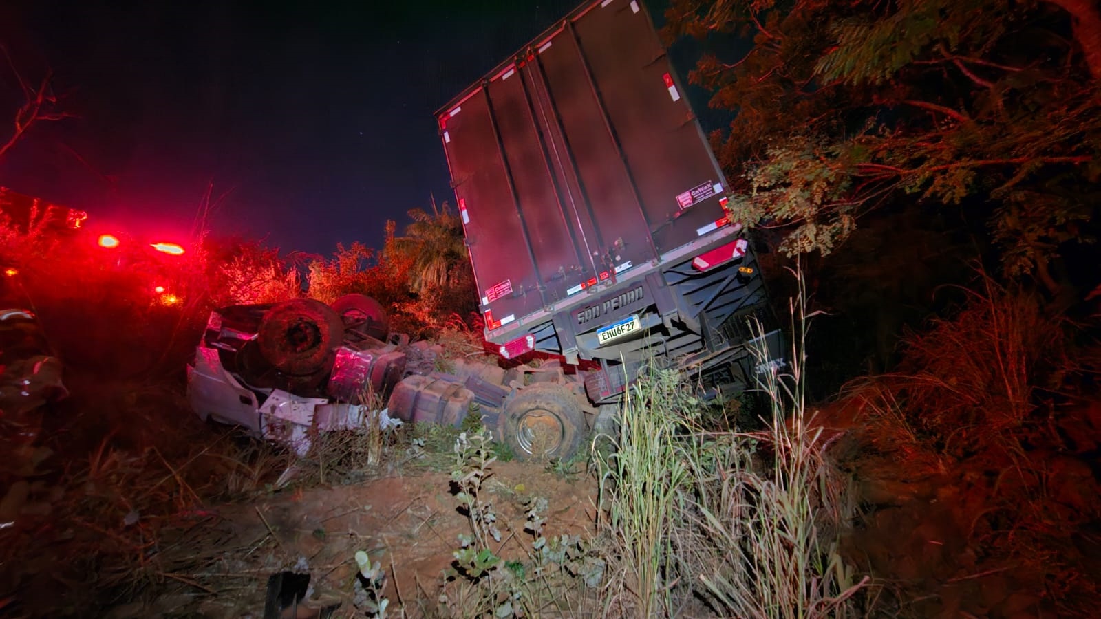 Ao chegarem ao local, os bombeiros se depararam com uma carreta capotada às margens da rodovia. O veículo, que seguia de Montes Claros com destino a Betim, encontrava-se vazio no momento do acidente.