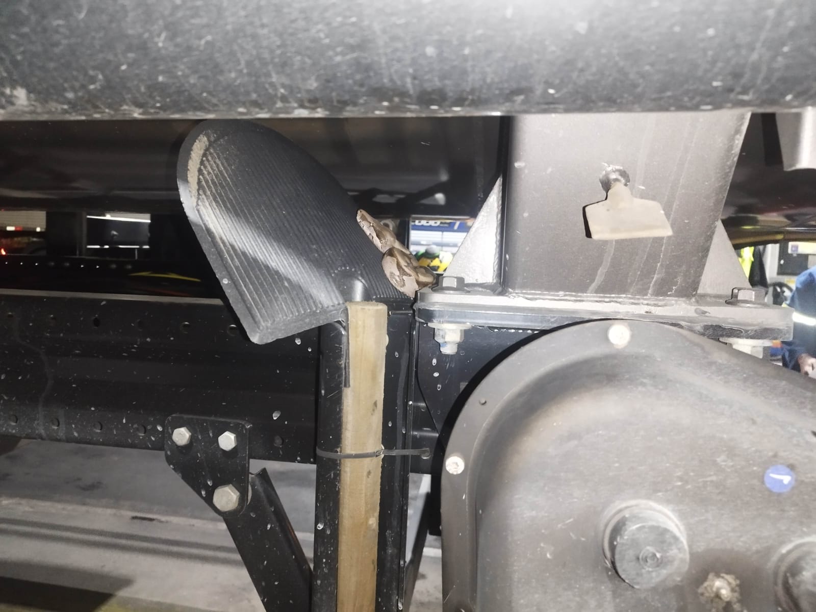 Já na noite anterior (14), por volta das 19h, uma equipe foi acionada para atender uma ocorrência inusitada em um posto de combustíveis. Uma serpente da espécie jibóia foi encontrada próxima ao chassi de um caminhão-tanque, na base do compartimento de transporte de combustíveis. O animal foi identificado por motoristas e frentistas durante o abastecimento. Militares do Pelotão de Emergências Ambientais e Resposta a Desastres (PEMAD) realizaram a captura com uso de equipamentos de proteção individual e técnicas apropriadas, garantindo a segurança no local.