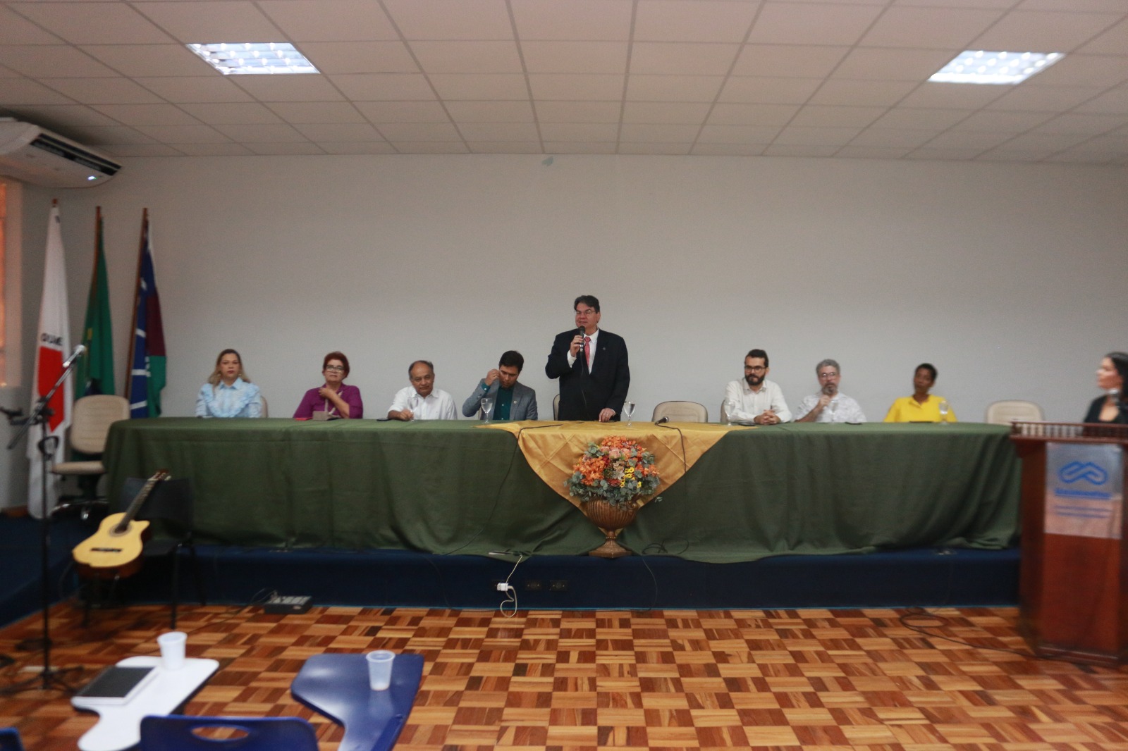 A mesa de honra foi composta pelo vice-reitor da Unimontes, professor Dalton Caldeira Rocha, representando o reitor professor Wagner de Paulo Santiago; pelo pró-reitor adjunto de Pós-Graduação, Daniel Coelho; pelo superintendente do HUCF, Iuri Simões Mota; pelo diretor de Desenvolvimento Acadêmico, Henrique Andrade Barbosa; pelo coordenador da Comissão de Residência Médica (Coreme), professor Divino Urias Mendonça; pela coordenadora da Comissão de Residência Multiprofissional (Coremu), professora Andra da Silva Dionísio; pela diretora do CCBS, professora Cássia Pérola; e pela coordenadora de Pós-graduação Lato Sensu, professora Ana Paula Maciel.