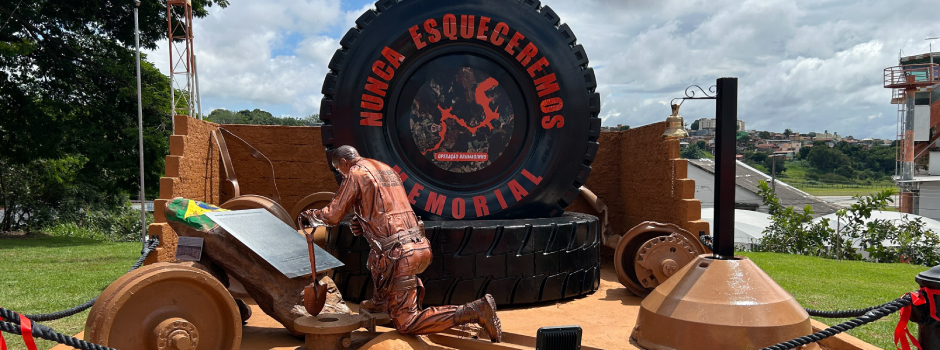 No memorial, construído com elementos de grande magnitude do desastre, há uma estátua em tamanho real de um bombeiro militar, que presta reverência aos nomes das 272 joias, registrados em uma placa. A peça foi entregue à corporação, em 2024, pelo governador Romeu Zema e pela Associação dos Familiares das Vítimas e Atingidos pelo Rompimento da Barragem em Brumadinho (Avabrum).
