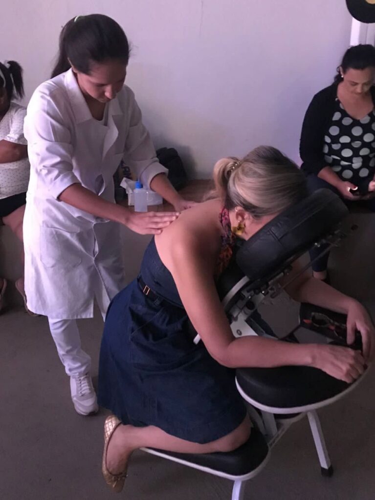 A massoterapeuta afirma que, por sua eficácia e benefícios, o procedimento pode ser buscado em muitos lugares devido a grande necessidade do serviço. “A massoterapia tem sido realizada em ambulatórios, spas; clínicas; academia de ginástica; clubes esportivos; empresas; navios; praias; hospitais; salão de beleza; e até mesmo em festa e a/em domicilio. Em empresas multinacionais temos a ‘Quick massagem’ que é realizada em cadeiras, em espaços públicos como supermercados, shoppings, entre outros”, conclui. (Sob supervisão de Stênio Aguiar)