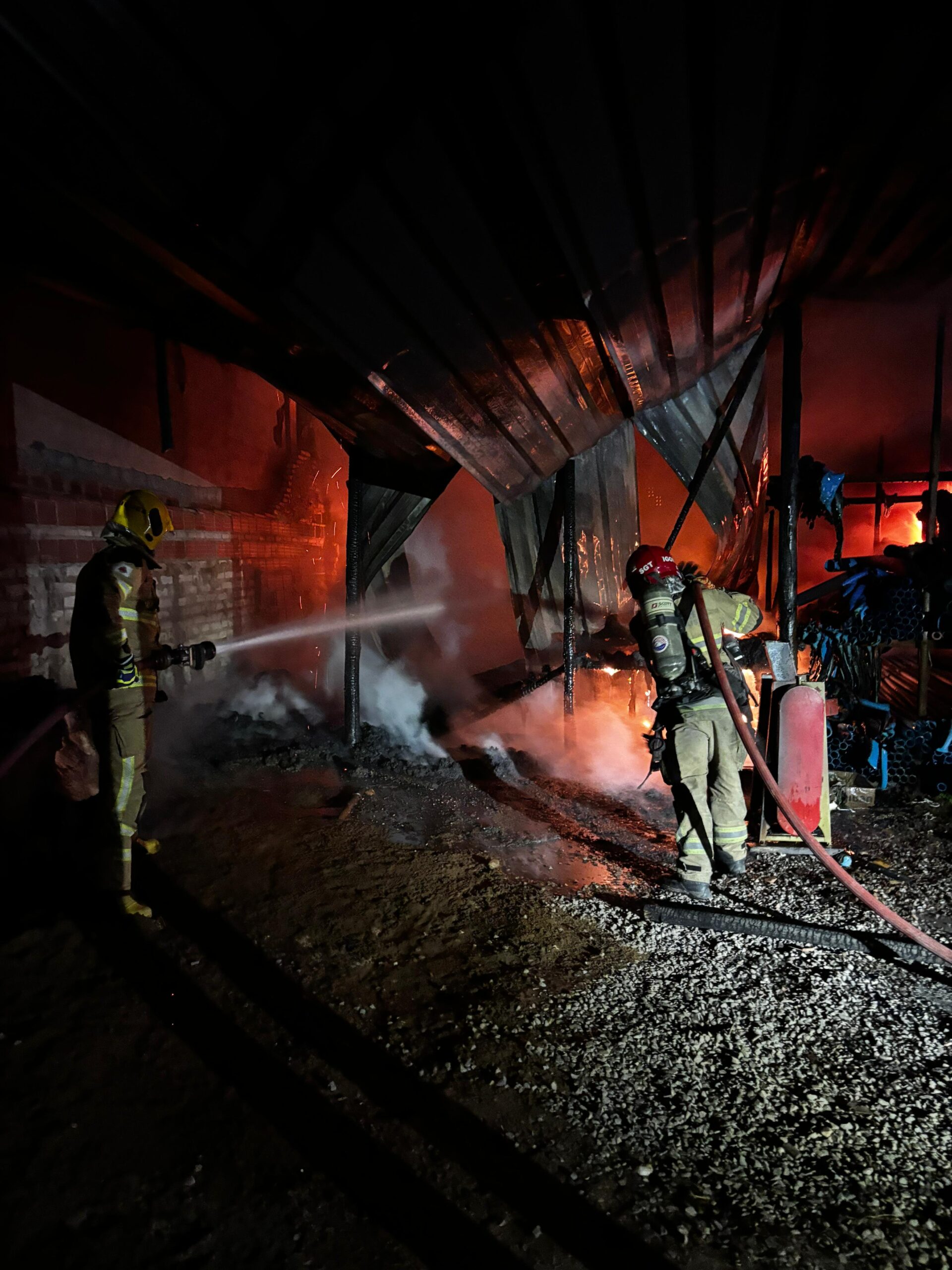 No último domingo (29), o Corpo de Bombeiros Militar em Salinas foi acionado para combater um incêndio de grandes proporções em um galpão utilizado para armazenamento de tubos de PVC, localizado no Centro, no município de Salinas.