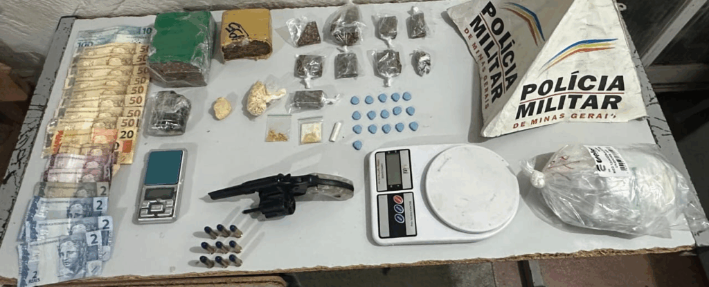 Uma operação da Polícia Militar de Minas Gerais (PMMG) desarticulou, na tarde desta quarta-feira (13), um ponto de preparo, armazenamento e distribuição de drogas no bairro Itatiaia, em Montes Claros, no Norte de Minas. A ação resultou na prisão de uma mulher de 26 anos, na apreensão de uma motocicleta utilizada para o transporte de entorpecentes e na descoberta de grande quantidade de drogas, incluindo diferentes tipos de substâncias ilícitas, que estavam escondidas até mesmo no quarto de uma criança.