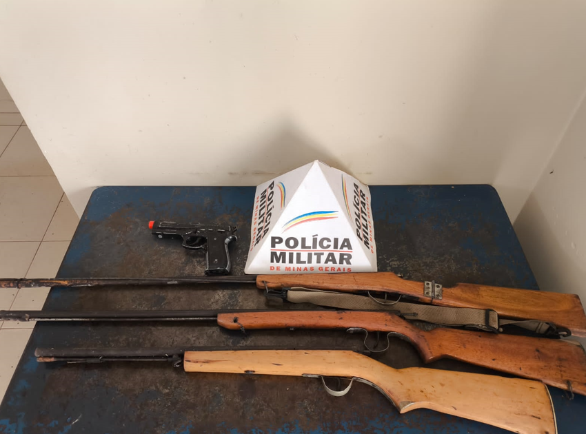 Na propriedade, também foram localizadas três espingardas polveiras artesanais escondidas em um matagal.