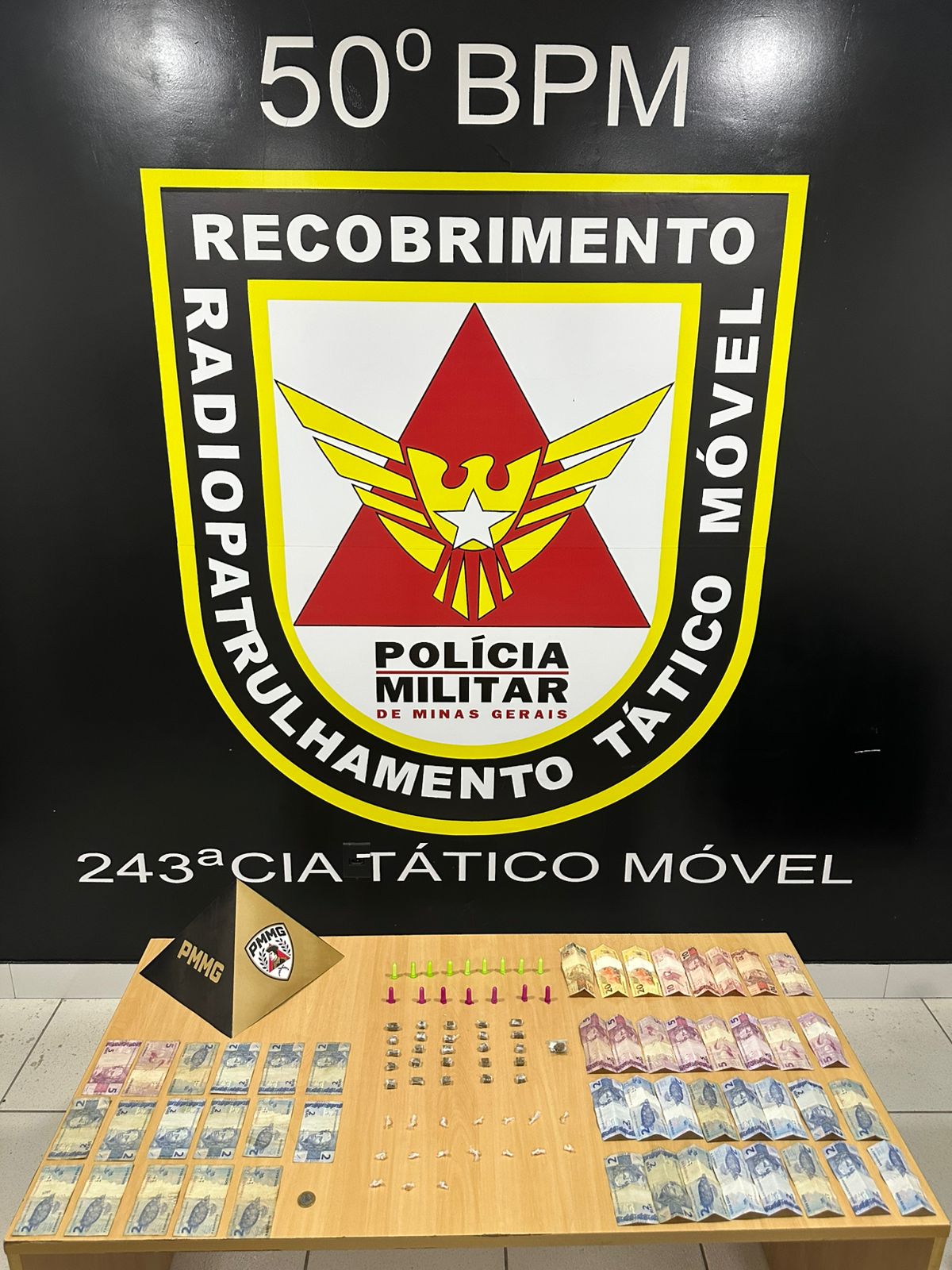 No bolso traseiro da bermuda foram encontrados R$ 92,00 em dinheiro trocado e um aparelho celular. Segundo a Polícia Militar, o telefone seria utilizado para viabilizar o comércio ilícito de entorpecentes.