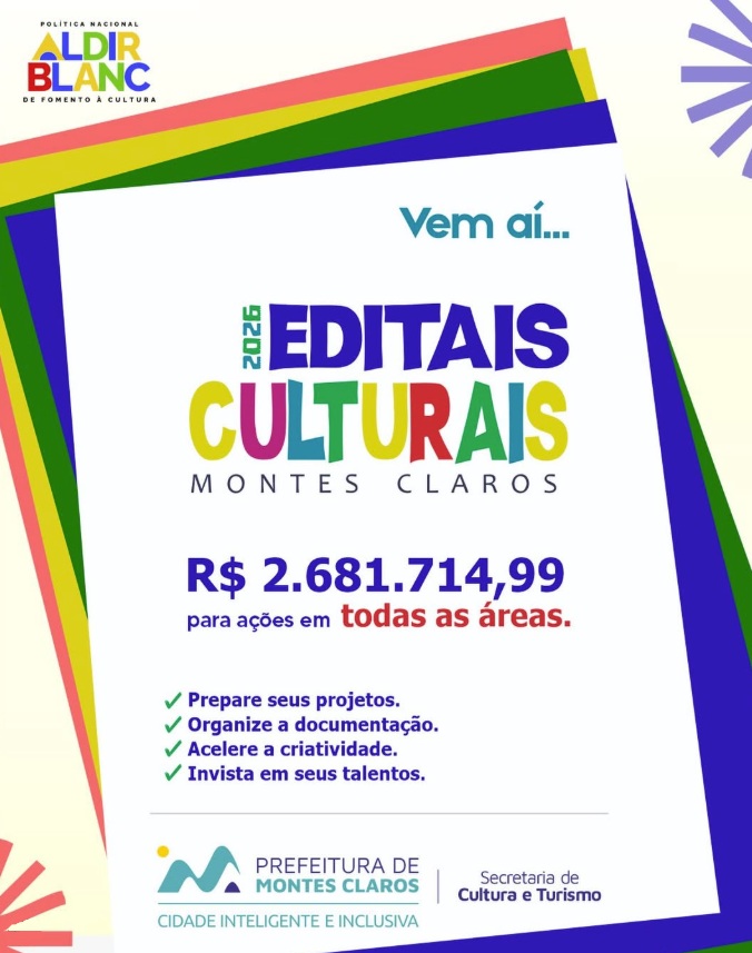 Com a liberação dos recursos da Lei Aldir Blanc, Montes Claros se integra ao conjunto de municípios brasileiros que estão ampliando os investimentos no setor cultural, garantindo condições para que artistas e produtores locais possam transformar ideias em projetos concretos e fortalecer ainda mais a riqueza cultural da região.